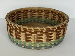 Woven on a round wood base. Colors match the Ocean Waves Wall and the Large Cuisine Plate Basket. Will work on shaping and arrow triple twine, which gives it the ocean wave look. The basket also fits nicely inside the Large Cuisine Basket for travel/packing space.