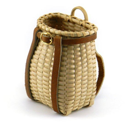 Named for mountains in Massachusetts near my home, this little pack has all the features of a full size back pack - lashed rims, leather harness and skeds on the bottom. It is woven of black ash splint over a puzzle mold, which is taken apart to be removed after the basket is made. Business cards fit perfectly in this treasure.
