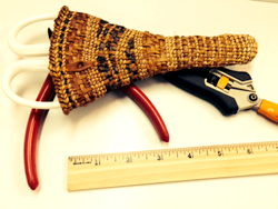 Tools needed: Packing tool, scissors, small needle-nose pliers, large-eyed needle for wax linen, measuring tape, clothes pins