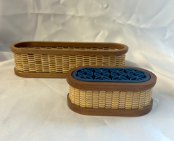 Weave these two oval "stash and store" baskets with complete cherry construction with cane weavers on class molds. These baskets can be used for a variety of purposes but were designed to hold a tool insert for basket tools, pens and pencils along with other crafting tools.