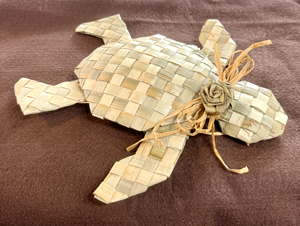 Students will create an adorable 3D Hawaiian Sea Turtle made of Lauhala. It is a 2 sided weave so the body cavity will be stuffed to give it a pillow look on the body. Lauhala is the primary weaving material in the islands and comes from the Pandanus tree. The neck will have a raffia tie. We can add shells to the raffia or a rose that the teacher has made of everyone. If you know how to make a rose, you can make your own.
