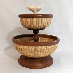 Weave this two-tiered epergne over class molds using cane staves and weaver and cherry bases, rims and pedestal. An acrylic topper completes this piece. Options other than a whale's tail will be available at the class. Basket can be prepped to assemble at home for easy packing.
